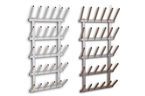 Schwenkbarer Wandrahmen für 6 Paar Ski/Snowboard mit selbsthemmenden Clips