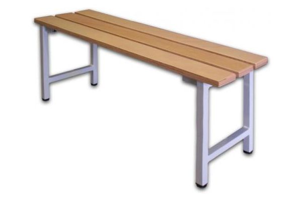 Sitzbank mit Füßen aus Stahl und Sitzlatten aus Buche