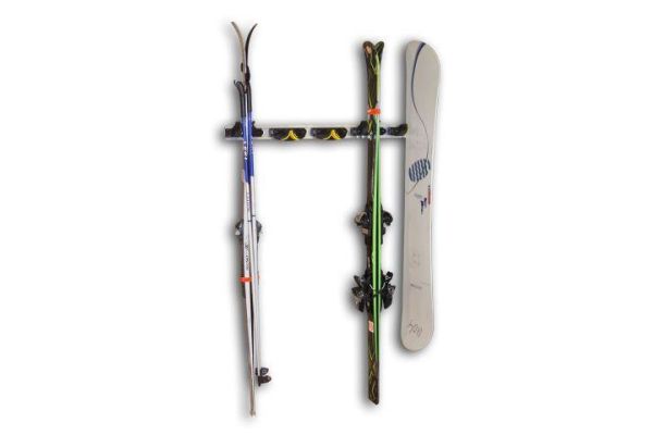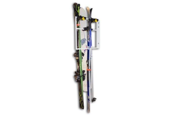 Wall frame for 6 pairs of skis/snowboards with self-locking clips